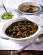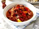 Arrange goulash and potatoes on plates. Garnish goulash with marjoram leaves. Serve with coarse mustard.