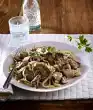 Bring to the boil, stir in the sauce thickener and bring to the boil again. Add mushrooms, paprika and onions again. Season to taste with salt and pepper.