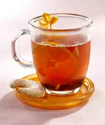 Cut 1 orange into slices. Roast the almonds in a pan without fat until golden brown. Put 1 slice of orange, 1 teaspoonful of raisins and almonds and 1 star anise in each glass, fill up with punch. Decorate glass edges with orange spirals and serve hot
