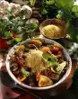 Season to taste with salt and nutmeg. Drain soup greens and lentils. Layer potato puree, soup greens and lentils in a greased casserole dish. Whisk eggs, sour cream and cream cheese. Season with salt and pepper.