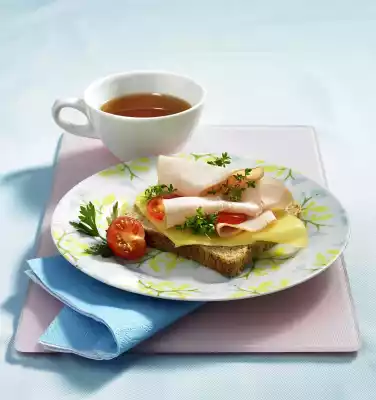 Whole grain toast with turkey breast, cheese, tomato and cress