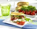 Cover toast with cheese. Slice 1 tomato, cut the others in half. Wash the cress and cut from the bed. Spread tomato slices, cress and turkey breast slices on the cheese. Garnish with a leaf of parsley and tomato halves