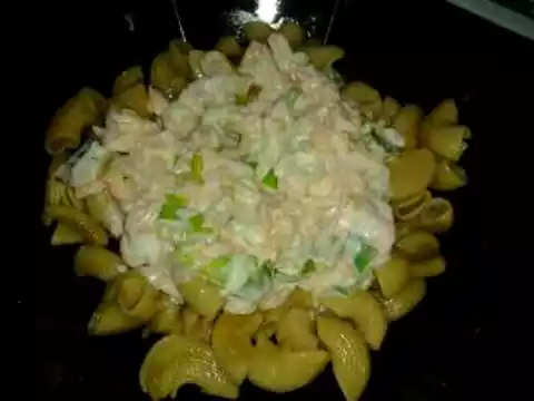 Cut the smoked salmon into small pieces, add to the onions and fry everything briefly together.