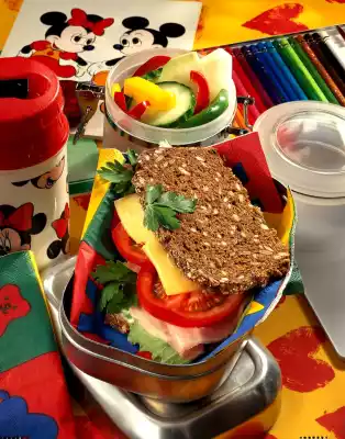 Wash the salad and dab dry. Wash and slice the tomato. Spread slices of bread with salad cream. Put lettuce leaves, ham, tomato and cheese on a slice of bread. Place another slice on top and garnish with parsley as desired