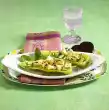 Arrange salad and toast on a board. Add scrambled eggs and diced meat and garnish with the remaining chives. Serve with orange juice.