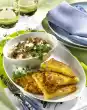 Peel onions and cut them into fine cubes. Heat 1 tablespoon of oil in a saucepan and sauté the onions slightly. Deglaze with broth. Add vinegar and 3-4 tablespoons of oil. Season with salt and pepper. Let the marinade simmer for about 5 minutes at low heat. Drain the potatoes, rinse with cold water, peel and cut into slices of about 3 mm thickness. Pour the marinade over the potato slices. Clean and wash spring onion and cut into rings. Wash and quarter the cucumber and cut into slices. Add both to the potatoes and mix well, season to taste. Heat the remaining oil in a large frying pan and fry the escalopes for 3-5 minutes on each side until golden brown.