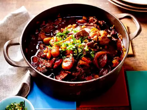 Add bay leaf and cloves and bring to the boil. Cover and stew for approx. 3 hours at low to medium heat.