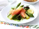 Wash the asparagus, cut off the woody ends. Cut into slices at an angle. Approx. 8 minutes before the end of the cooking time, mix the asparagus into the risotto and add to the cooking time. Wash, clean and shake dry the wild garlic, cut approx. 2/3 into strips. Puree the remaining wild garlic with 5 tbsp. oil