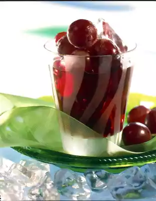 Mix grape juice, grenadine and lemon juice in a shaker. Coarsely crush the ice cubes. Wash the grapes. Divide ice and grapes into four glasses. Pour the drink over them, pour mineral water over them