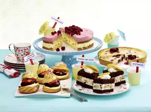 Pour the choux pastry into a piping bag with star-shaped spout (15 mm Ø) and squirt 8 cream puffs (tuffs of approx. 8 cm Ø) onto a baking tray (approx. 32 x 39 cm) lined with baking paper. Fill an ovenproof dish with water and place on the bottom of the oven. Bake in the preheated oven (electric cooker: 200 °C/ convection oven: 175 °C/ gas: level 3) for 25-30 minutes. Pour 150 ml milk and 100 g cream into a mixing cup rinsed with hot water. Add cream powder Mousse au Chocolat, stir briefly and whisk at highest setting for approx. 3 minutes. Make a mousse à la vanilla in the same way. Pour both into a flat bowl and chill for approx. 30 minutes. Remove the finished cream puffs from the oven, let them cool down briefly, cut them open with scissors and let them cool down. Wash, clean and slice the strawberries. Fill creams into 1 piping bag each.