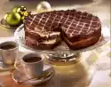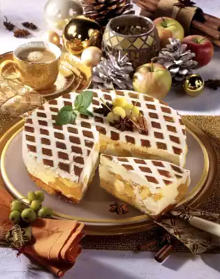 Close the mould edge around the base. Spread cream on top. Chill the cake for 4-5 hours. If necessary, place a decorative grid or paper strips on the cake, dust with cinnamon and remove the grid or paper. Decorate the cake
