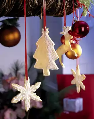 Place on 3 baking trays lined with baking paper and make small holes. Bake in the preheated oven (electric cooker: 200 °C/ convection oven: 175 °C/ gas: level 3) for about 10 minutes. Let them cool down. Stir icing sugar, liqueur and lemon juice until smooth. Decorate the cookies with this mixture as desired. Dust with icing sugar and hang up with ribbon