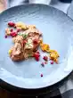 Wash the parsley. Pluck the leaves and pat dry. Fry in hot oil for about 1/2 minute until crispy. Drain on kitchen paper. Arrange salad and madarines on plates. Pour sauce over them. Garnish with the parsley leaves