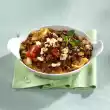 Peel and wash carrots and potatoes and cut them into cubes or slices. Clean the Chinese cabbage, cut into strips and put on a sieve. Wash briefly in cold water and drain. Peel and chop the onion. Cut the smoked pork also into cubes. Heat the oil in a pot and fry the onions. Add carrots, potatoes and Chinese cabbage and braise briefly. Add the diced Kasseler, stock and caraway seeds. Bring to the boil, cover and simmer for 10-15 minutes. In the meantime wash and chop the parsley. Season stew with salt and pepper and serve sprinkled with parsley