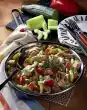 Add black salsifies and cook for about 15 minutes. Add broccoli and carrots and cook for approx. 8 minutes. Add mushrooms and bring everything to the boil. Season to taste. Wash the herbs, cut or pluck them finely and sprinkle over the top. Rice tastes good with it