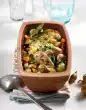 Clean and wash the cabbage and peppers and cut into wide strips or pieces. Drain the pineapple and collect the juice. Cut the pineapple into small pieces. Sort and wash the sprouts. Peel and finely dice onions