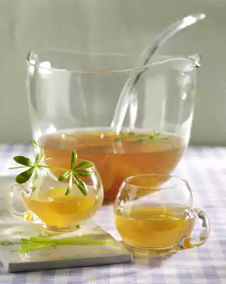 Sprinkle orange filets, juice and woodruff with sugar. Pour in wine and let it stand in the fridge for about 30 minutes. Pour a bottle of sparkling wine before serving.