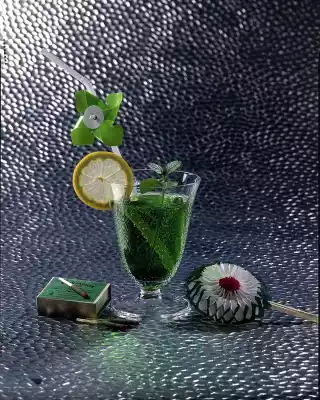 Put ice cubes, woodruff syrup and lemon juice in a glass. Fill up with tonic. Garnish with mint and lemon slice.