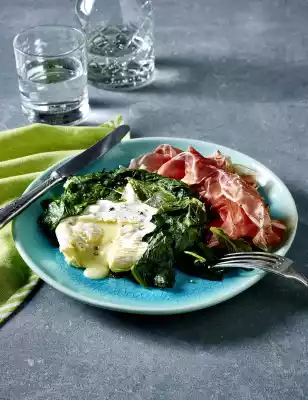Arrange the ham on 4 plates. Remove the camembert from the oven, wrap it in aluminium foil and spread it on the ham, sprinkle with the vinaigrette.