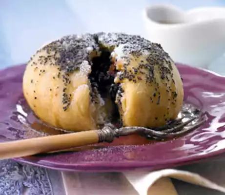 Melt 100 g butter. Stir in the poppy seeds and roast for about 1 minute while stirring. Arrange dumplings on plates. Cover with poppy seed butter and dust with icing sugar.
