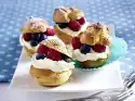 Bake in the preheated oven (electric: 175 °C/ gas: level 2) for 12-15 minutes. Let cool on a cake rack. In the meantime, mix 5 tablespoons of milk and pudding powder. Put the remaining milk and sugar in a pot and bring to the boil.