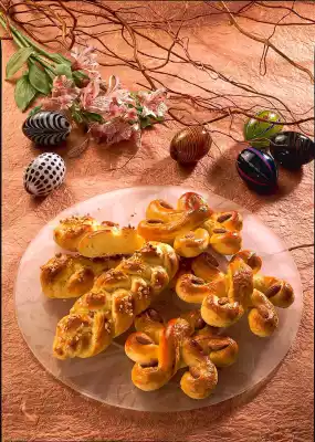 Decorate the rolled-up ends of the sun wheels with 1 almond core each. Bake in the preheated oven (electric oven: 200 °C/ gas: level 3) for 10-12 minutes. Best consumed fresh from the oven.