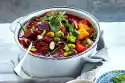 Heat the oil in a pot. Sauté garlic, chilli and ginger for about 1 minute. Add potatoes, cauliflower and paprika, dust with curry, turmeric and cumin. Add curry paste and sauté briefly. Season with salt and pepper. Deglaze with broth and coconut milk. Bring to the boil, cover and cook for 15-18 minutes. Wash and clean the sugar snap peas and add 2-3 minutes before the end of cooking.