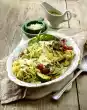 Fry the asparagus slices and tofu for about 3 minutes, then add the radishes. Season vegetables with salt and pepper and remove after 2-3 minutes. Add coconut milk and curry paste to the wok, simmer for about 5 minutes and season to taste with salt and lemon juice.