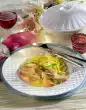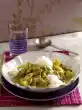 Put the mango pieces into the pan and fry them for about 3 minutes. Sprinkle with curry and sauté briefly. Deglaze with stock and cream and simmer for 6-8 minutes. After about 5 minutes add spring onions.
