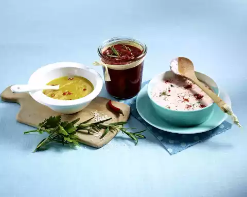 Peel and finely chop the garlic. Wash parsley, shake dry, pluck leaves from the stalks and chop finely. Mix yoghurt, garlic, parsley and curry powder with a whisk in a bowl. Season to taste with salt and pepper