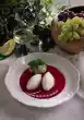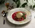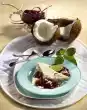 Whisk the milk and sauce powder with the whisk of the hand mixer for approx. 1 minute at highest speed. Sort the raspberries. Peel kiwis and cut into thin slices. Arrange ice cream, vanilla sauce and fruits on 4 plates and serve dusted with lemon balm and icing sugar