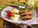 Squeeze the gelatine and dissolve at low heat. Mix first with something, then with the rest of the yoghurt mass. Chill for about 10 minutes. Beat egg whites until stiff, fold in. Pour yoghurt mousse into 4 dessert glasses. Chill for at least 2 hours. Decorate with remaining jelly and chocolate rolls