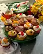 Sprinkle with almonds. Decorate with lemon balm.