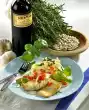 Cut the fillet into 4 pieces, wash and pat dry. Sprinkle with lemon juice and season with salt and pepper. Finely chop 2 sage leaves. Stick the remaining leaves and Parma ham with wooden skewers onto the fillet pieces.
