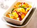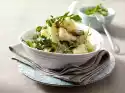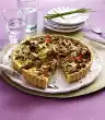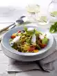Heat the oil in an oval roaster. Lightly fry the mushrooms, courgette, onions and garlic, turning them over. Season with salt and pepper. Add thyme and peas, push vegetables to the edge of the roaster.