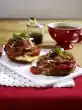 Puree the soup. Stir in cream and zucchini strips, bring to the boil once and simmer for another 1-2 minutes. Season to taste with salt and pepper. Sprinkle with croutons and parsley. Green olives taste good with it