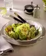 Add the vegetables to the sauce, turn them, heat them up briefly and season again with salt, pepper, lime zest and juice. Wash the coriander, shake dry, cut the leaves from the stems. Arrange vegetables with the sauce, sprinkle with nuts and coriander.