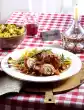 Spread Pancetta on a baking tray lined with baking paper. Wash the sage, dab dry and remove the leaves. Sprinkle pancetta with it. In a preheated oven (electric cooker: 200 °C/ circulating air: 175 °C/ gas: see