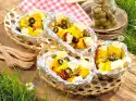 Fold them over and fix them with wooden skewers. Clean and wash the zucchini, cut in half lengthwise. Hollow out a little and cut into 8 cm long, slightly slanted pieces. Place one sausage each in the hollow. Wrap bacon around the sausage and pin it firmly. Cook the prepared ingredients on a hot grill while turning for about 15 minutes