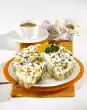Roll out one half and cut out small Easter bunnies with a cookie cutter. Colour the rest of the marzipan with food colouring red, blue and green. Form small Easter eggs from the red and blue marzipan. Press green marzipan through a garlic press and place it on the cake as a tuft of grass. Place marzipan bunnies and eggs on top and serve. Results in about 18 pieces