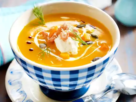 Nordic Pumpkin Soup With Prawns, Horseradish And Dill