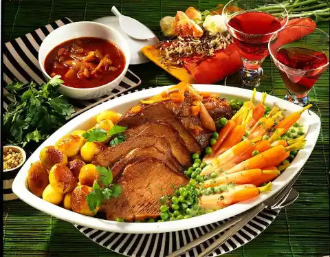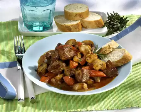 Braised Boiled Beef With Vegetables And Roasted Potatoes