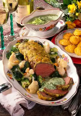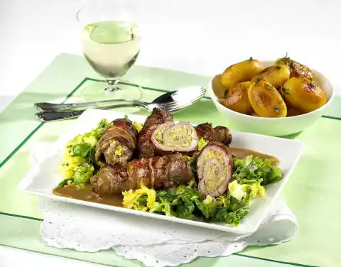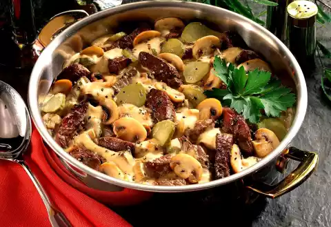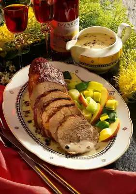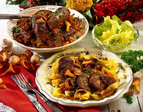 Spätzle Gratin With Beef Cutlets And Mustard Cream Sauce