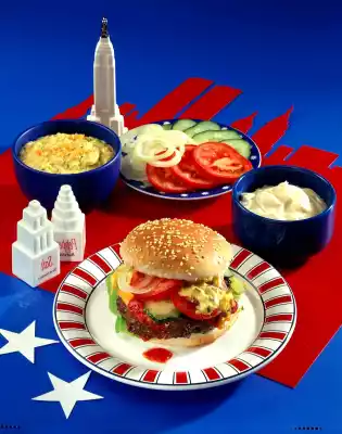 Cheeseburger With Fresh Vegetables And Minced Meat Filling