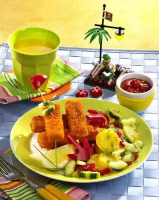 Fish Fingers Tower With Potato Salad