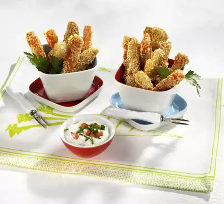 Kohlrabi And Carrot Sticks In A Sesame Coat With Cream Cheese Cream