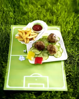 Mince Footballs On Cucumber Salad Playing Field