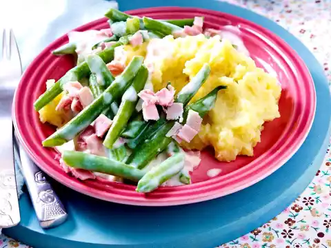 Mashed Potatoes With Ham And Beans Sauce