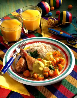 Chicken Legs With Carrot Vegetables And Curry Sauce