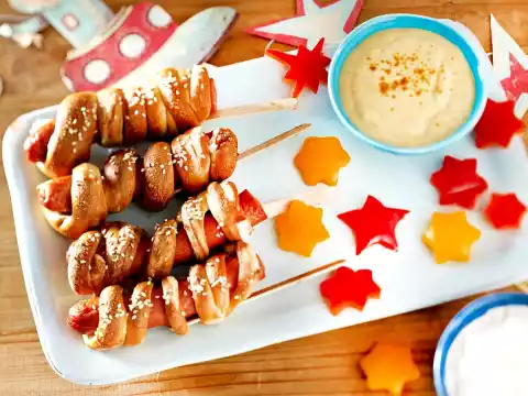 Sausage Rockets With Sun-, Moon Dip And Stars